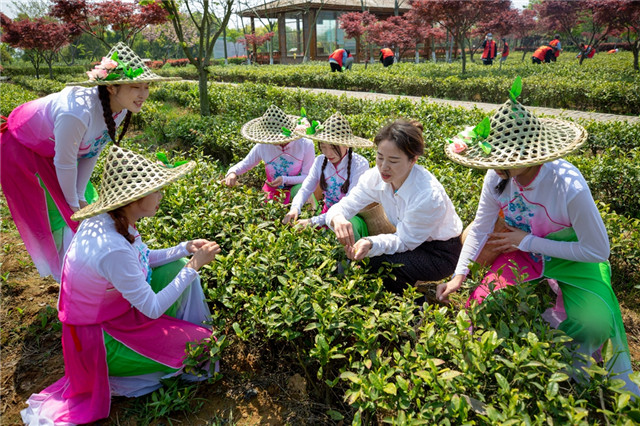 句容茶園里開設(shè)“微黨課”500多名“紅馬甲”點(diǎn)綴綠茶園
