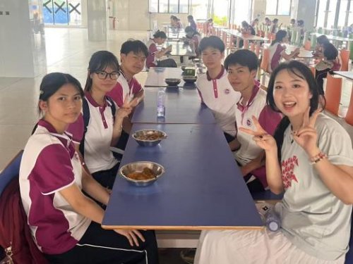 團(tuán)隊(duì)成員在廣西靈山縣第三中學(xué)開展陪餐服務(wù)工作