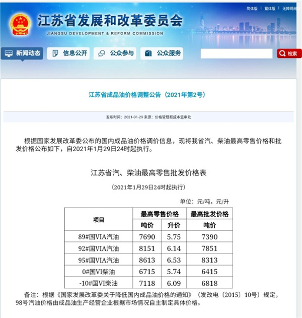 根據(jù)江蘇省發(fā)改委的調(diào)價(jià)通知,江蘇92號汽油6.14元/升,95號汽油6.53元/升,0號柴油5.74元/升。據(jù)悉,本次調(diào)價(jià)是進(jìn)入2021年后的第二次上調(diào),也是現(xiàn)行調(diào)價(jià)機(jī)制自2013年春天執(zhí)行以來,油價(jià)歷史性的完成了“六連漲”。截至本次調(diào)價(jià),2021年國內(nèi)成品油零售價(jià)共上調(diào)兩次,汽柴油零售價(jià)每噸累計(jì)上調(diào)260元/噸、250元/噸。