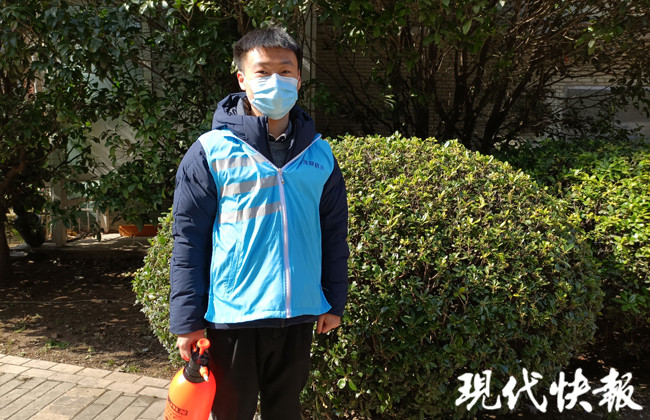 “你好,我是社區(qū)過來收垃圾的,你把垃圾放到門口。”95后社工倪彩文正在樓下和居家隔離的居民溝通。在社區(qū)網(wǎng)格內(nèi)巡邏,為居家隔離的居民做好消殺、代扔垃圾、代購日用品等等,都是他每天的工作內(nèi)容。