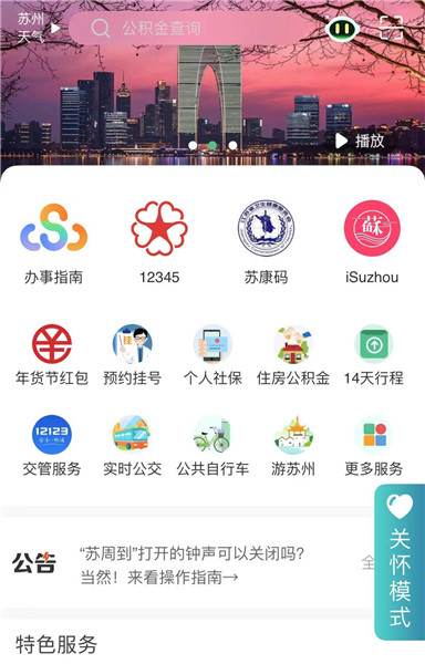 此次,“蘇周到”又新添了關懷模式、云拜年、找工作、醫(yī)保電子憑證“碼上付”、自助挪車等新功能。