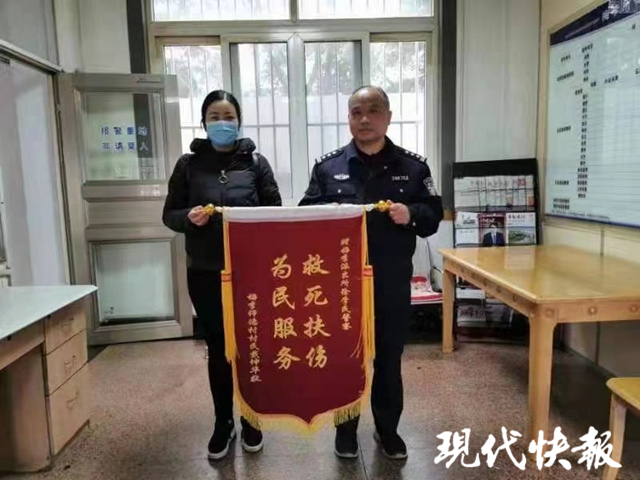 戴先生的女兒戴女士心存感激,一直苦苦尋找救了他父親的好心人。直到不久前,戴女士去藥店買藥,與店員聊起了當天的事,店員表示當天救了她父親的就是梅李派出所社區(qū)民警徐學明,于是戴女士連忙制作了錦旗送到了派出所,送上了遲到的感謝。