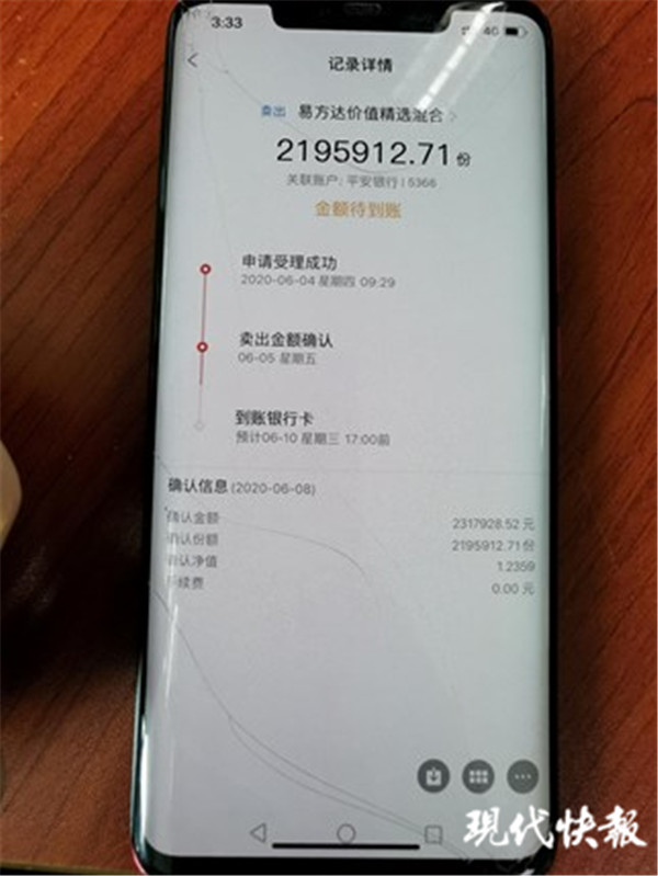 △ 購(gòu)買大額基金交易截圖,實(shí)為徐某偽造 警方供圖