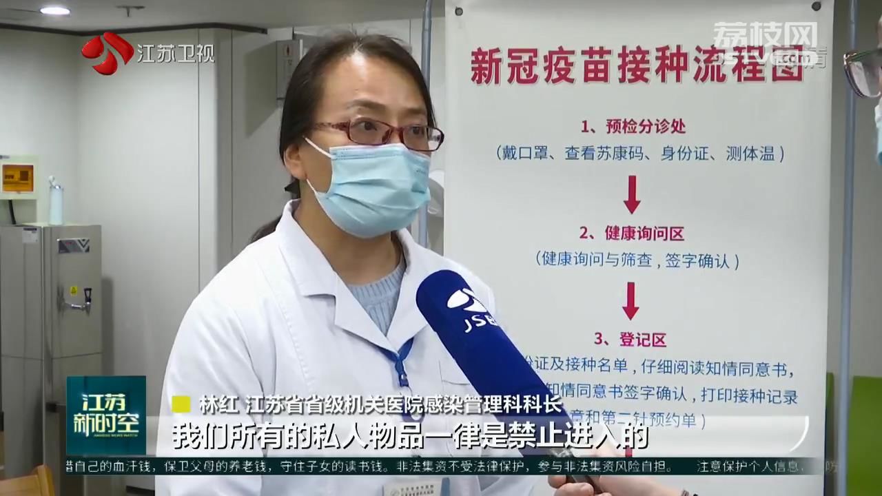 江蘇省省級機(jī)關(guān)醫(yī)院感染管理科科長林紅告訴記者,從事疫苗接種的醫(yī)護(hù)人員都是二級防護(hù),戴一次性帽子,戴外科口罩,穿隔離衣,并且在接種區(qū)域里面所有的私人物品一律是禁止進(jìn)入的。
