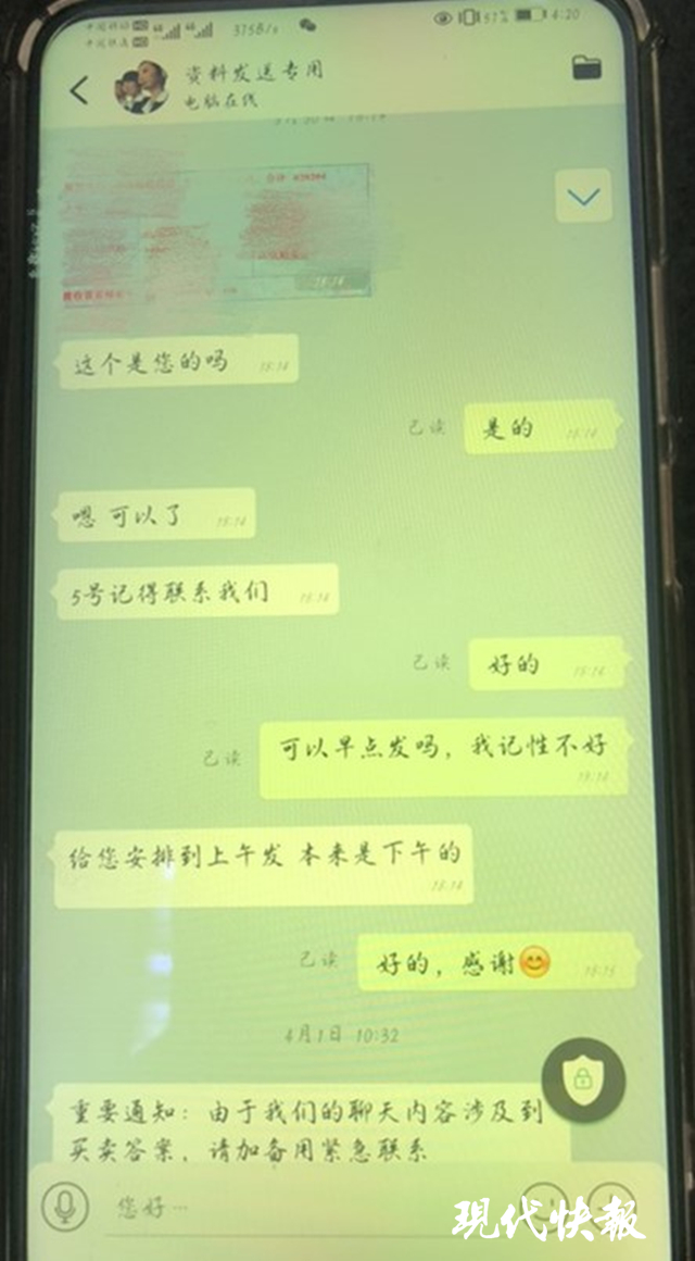 現(xiàn)代快報(bào)記者從常州高新警方了解到,今年3月下旬,李某的QQ郵箱收到一份出售自學(xué)考試答案的郵件。李某對(duì)自己即將到來的考試準(zhǔn)備不充分,想著有答案,便心動(dòng)了。隨后,按照郵件提供的QQ號(hào)加了“客服”。