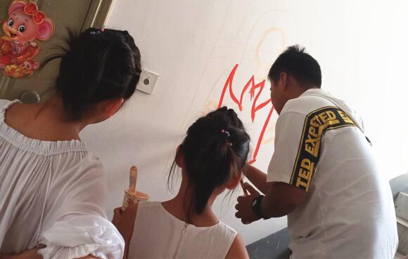 墻體畫師在給小朋友講解在活動注意事項后,包括怎么拿筆,怎么使用刷子,涂顏色時的順序等等美術(shù)方面的基礎(chǔ)知識,示范繪畫技巧,隨后讓孩子們自己動手。在畫師的指導(dǎo)下,孩子們迫不及待地拿起畫筆、刷子開始了“工作”,伴隨著畫筆飛舞,孩子們也不時的互相討論。經(jīng)過一個半小時的創(chuàng)作,生活鮮活的墻繪宣傳畫紛紛呈現(xiàn)出來。(戴天翠)