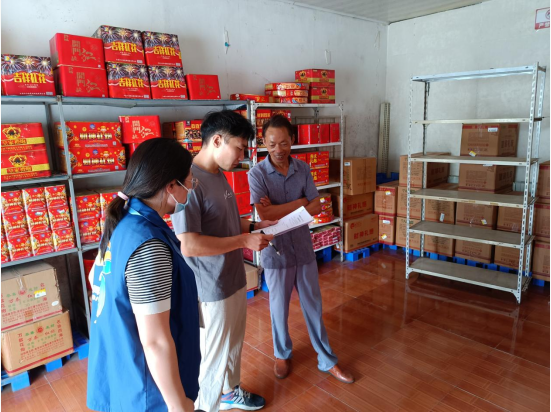 和進社區(qū)02號網(wǎng)格員馬玉娟與專家一起檢查網(wǎng)格內(nèi)煙花爆竹零售門店,重點檢查其煙花爆竹經(jīng)營許可證、進出貨記錄、生產(chǎn)日期,查看店內(nèi)是否有禁止煙火的標(biāo)志,門店內(nèi)消防器材是否符合要求,安全通道是否暢通等,并向門店負責(zé)人講解相關(guān)消防知識和安全知識,提高門店負責(zé)人和銷售人員的安全防范意識,叮囑他們特別是在高溫天氣下更要高度重視消防安全。經(jīng)網(wǎng)格員馬玉娟的排查發(fā)現(xiàn),門店內(nèi)煙花證即將到期,馬玉娟表示會叮囑負責(zé)人盡快完善手續(xù)更換新證。