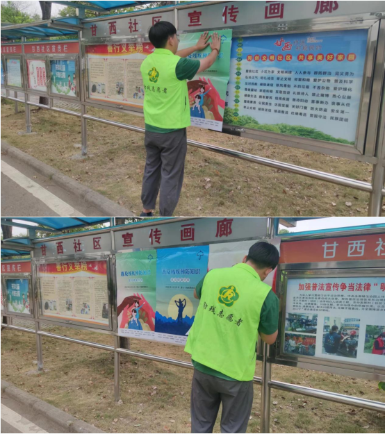 為營造扶殘助殘氛圍,甘西社區(qū)助殘志愿者在社區(qū)宣傳欄貼上了預(yù)防殘疾宣傳海報(bào),以圖文的形式向轄區(qū)居民展示殘疾預(yù)防的相關(guān)知識(shí)。