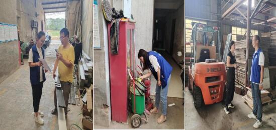 排查過程中,三位網(wǎng)格員各司其職。網(wǎng)格員方芳向企業(yè)負責人宣傳消防知識,推薦企業(yè)關注“南京消防”公眾號。端木和麗檢查企業(yè)手推式滅火器等消防設備是否準確、齊全、有效,并逐一檢查壓力,瓶體,軟管,噴嘴及相關設施,不錯過一絲隱患。楊勇逐一檢查企業(yè)叉車操作員相關操作證書,提醒企業(yè)使用叉車時一定要注意安全,做好防范,并認真及時登記等等。