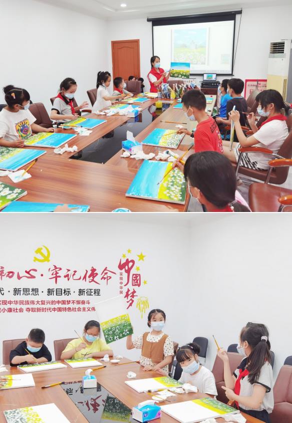 為了豐富轄區(qū)內(nèi)青少年的暑期生活,培養(yǎng)他們的繪畫能力和審美能力,8月30日下午,南京市江寧區(qū)淳化街道民主村新時代文明實踐站聯(lián)合關心下一代工作委員會和校外輔導站、街道社區(qū)教育中心和團支部,組織轄區(qū)內(nèi)青少年開展“七彩夏日 暑期創(chuàng)意水粉畫”主題活動?;顒蝇F(xiàn)場邀請了南京蘇米藝術張梅老師進行專題授課。