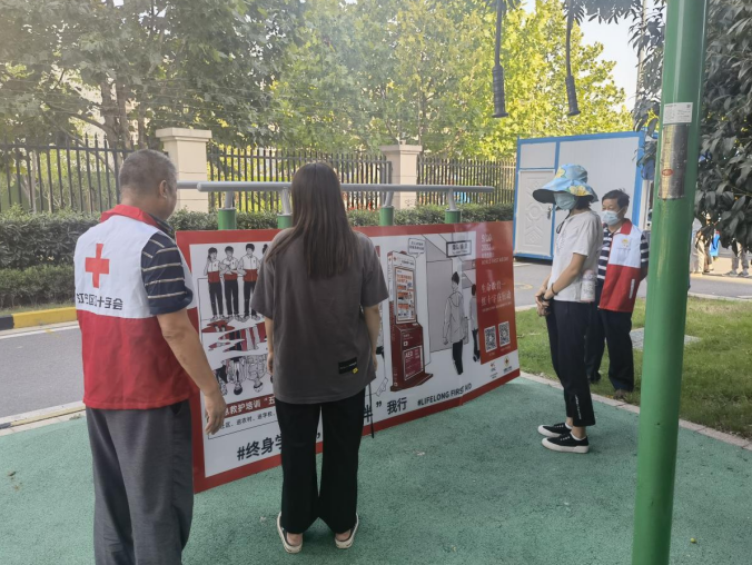 活動(dòng)中,紅十字志愿者在轄區(qū)內(nèi)布置了宣傳板,向來(lái)往居民介紹掌握急救技能的重要性,呼吁更多的居民學(xué)習(xí)急救知識(shí),參與“救在身邊”活動(dòng)。