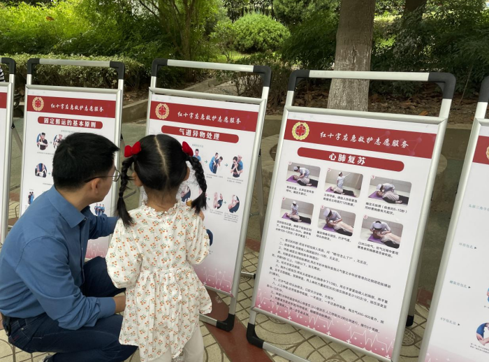 通過展板的形式向大家宣傳心肺復(fù)蘇的操作流程、氣道異物梗阻救治方法?;顒蝇F(xiàn)場家長們帶著孩子們認(rèn)真學(xué)習(xí),氣氛活躍,市民們表示以后如果遇到緊急情況,能更好的保護自己和能幫助別人。