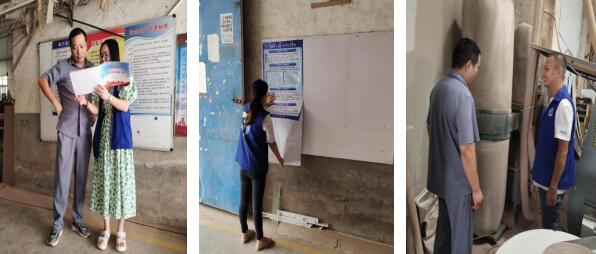 網(wǎng)格員楊勇、方芳、端木和麗來到唐家窯工業(yè)園的一家木制品加工企業(yè)。方芳向企業(yè)發(fā)放《安全生產(chǎn)手冊(cè)》,端木和麗張貼“事故出于大意,安全在于警惕”宣傳海報(bào)。從生產(chǎn)安全、建筑安全到用電安全,兩人逐一把各個(gè)要點(diǎn)詳細(xì)地介紹給企業(yè)負(fù)責(zé)人,督促他們樹立“安全第一”的意識(shí),落實(shí)企業(yè)主體責(zé)任。楊勇則具體檢查了企業(yè)的粉塵清掃記錄,將企業(yè)粉塵清掃不及時(shí)的隱患錄入181平臺(tái)社會(huì)面“小型場(chǎng)所巡查”模塊里,督促企業(yè)現(xiàn)場(chǎng)整改,并向他們講解粉塵的危害知識(shí)。在楊勇的強(qiáng)調(diào)和引導(dǎo)下,企業(yè)負(fù)責(zé)人立即安排員工清掃了粉塵,并表示,有了網(wǎng)格員這個(gè)警報(bào)器,安全生產(chǎn)這根弦一定會(huì)始終繃緊!