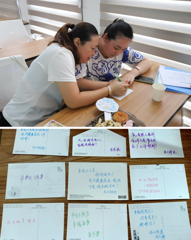 一張小小的明信片能承載不一樣的情誼和感動,承載自己對家人朋友美好的祝愿?,F(xiàn)場居民將一個個美好祝愿寫在明信片上,向家人和朋友表達自己最真摯的祝福。