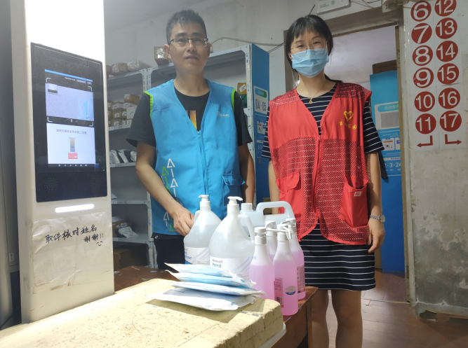 活動(dòng)中,社區(qū)工作人員與驛站員與快遞員親切交流,仔細(xì)詢問了解他們的工作、生活情況,聽取他們的訴求。并為快遞小哥、驛站員工送上溫馨的祝福和酒精、口罩、消殺、洗手液等防疫物資,并叮囑他們做好防疫防控工作的同時(shí),也要保護(hù)好自己,感謝他們?yōu)榫用袢罕姷男燎诟冻?,叮囑他們工作中注意交通安全??呻S時(shí)來社區(qū)喝口水、歇歇腳、給手機(jī)充充電,社區(qū)將全力協(xié)調(diào)解決他們的困難。