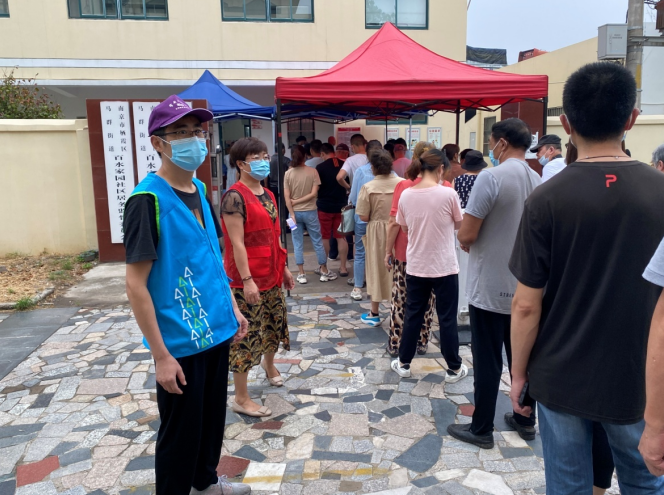 近日社區(qū)開展全民核酸,盧玉太前一天在“百水家園社區(qū)“寧小蜂”服務(wù)群里看到社區(qū)發(fā)的通知,就和社區(qū)工作人員聯(lián)系:明天我來做志愿者,我也來為社區(qū)防疫獻(xiàn)一份力量。