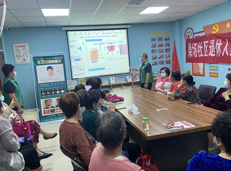 活動(dòng)主要針對(duì)轄區(qū)居民、新業(yè)態(tài)從業(yè)人員的口腔健康問(wèn)題。在義診開(kāi)展之前,美萊口腔醫(yī)院的醫(yī)護(hù)講師向大家講述了他從事口腔健康工作二十年來(lái)的經(jīng)驗(yàn)。在他的講述中,我們知曉了當(dāng)前我們對(duì)口腔健康認(rèn)識(shí)的不足,對(duì)保護(hù)牙齒意識(shí)的欠缺。