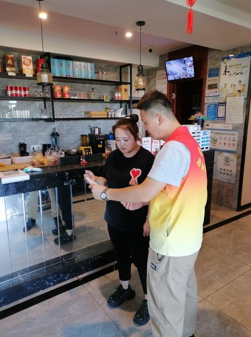 工作開展期間,社區(qū)環(huán)保員逐個上門與轄區(qū)的餐飲油煙排放單位負責(zé)人進行對接,告知其工作內(nèi)容和系統(tǒng)的操作流程,提供相關(guān)資料,并現(xiàn)場指導(dǎo)店主們完成注冊和使用。