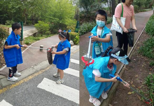 上午八點(diǎn)半,社區(qū)居民就早早來(lái)到紫金山腳下集合,同時(shí)參與到活動(dòng)中的還有來(lái)自南京師范大學(xué)的幾名學(xué)生。志愿者們穿上亮閃閃的藍(lán)色志愿工作服,拿到垃圾袋和垃圾夾之后,就頗具使命感地忙碌起來(lái)。有幾個(gè)居民小朋友跟在社區(qū)主任后面,在景區(qū)入口處給路人發(fā)放垃圾分類傳單,收獲了路人的一致好評(píng);有幾組居民家庭快速地走在最前方,由小朋友用垃圾夾將煙頭、瓶蓋等不易發(fā)現(xiàn)的垃圾處理掉;還有小朋友因?yàn)榧议L(zhǎng)不能陪同,在南師學(xué)生的照顧下也能邁出堅(jiān)定的步伐。一路上,志愿者們歡聲笑語(yǔ),在撿垃圾的同時(shí)也欣賞了紫金山的初秋美景。
