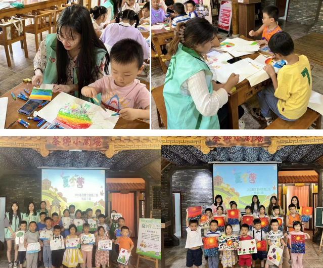 南工程實(shí)踐團(tuán)成員們?cè)谂品淮迨钇谙牧顮I(yíng)活動(dòng)中擔(dān)任繪畫老師,為青芽們開(kāi)展以茶鄉(xiāng)、大自然為主題的一系列繪畫課堂,不僅進(jìn)行了生動(dòng)的知識(shí)普及宣講,還手把手教小青芽們創(chuàng)意繪畫,讓青芽們度過(guò)一個(gè)生動(dòng)豐富、特色有趣的假期。