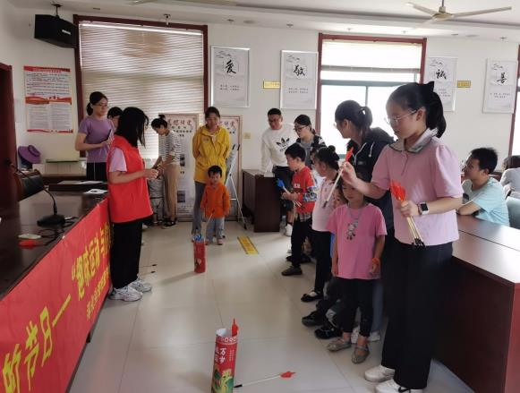 在接下來的環(huán)節(jié)中,志愿者將小朋友們進(jìn)行了分組,帶領(lǐng)大家開展投鏢和投壺比賽,投鏢比賽以投中數(shù)字加起來最高的一組獲勝,投壺比賽則是投中箭羽最多的一組獲勝,每一項(xiàng)結(jié)束后,獲勝隊(duì)伍都可以獲得積分。志愿者講解完游戲規(guī)則后,孩子們迫不及待地開始了游戲,在志愿者和家長的引領(lǐng)和保護(hù)下,為自己的隊(duì)伍贏取了積分和小禮品。