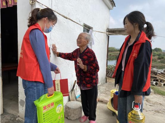 此外,志愿者還帶著食用油、大米、毛巾等生活必需品,對轄區(qū)內(nèi)的高齡老人開展走訪慰問,了解他們的身體情況和日常需求,祝福他們重陽節(jié)快樂,身體健康、生活順?biāo)臁?/p>