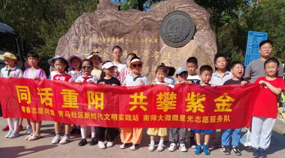 為了慶祝中國傳統(tǒng)節(jié)日重陽節(jié),2022年10月3日上午,馬群街道關(guān)工委、青春志愿同盟、青馬社區(qū)居委會、南京師范大學(xué)微微星光志愿服務(wù)隊(duì)聯(lián)合組織青少年家庭開展“同話重陽 共攀紫金”登山賽活動。青馬社區(qū)的居民家庭在紫金山登山過程中,打卡了沿途六個志愿者設(shè)立的打卡點(diǎn),并且完成了三個重陽節(jié)小游戲,最后順利登頂,增強(qiáng)了社區(qū)居民的凝聚力與向心力。