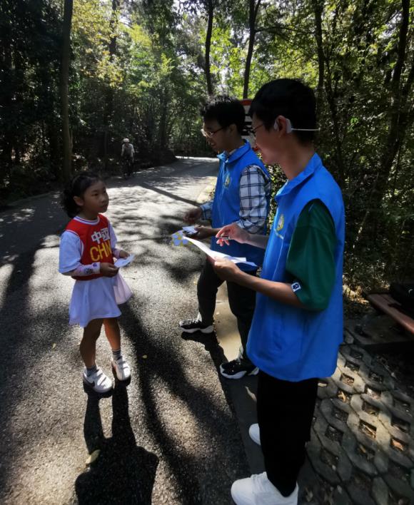 在六個打卡點(diǎn)中,第二、三、四打卡點(diǎn)分別設(shè)置有三個小游戲:“重陽知識趣問答”小游戲考驗(yàn)了小朋友對于重陽節(jié)時間、來源這些基礎(chǔ)知識的掌握;“重陽詩句小抽查”小游戲考驗(yàn)了小朋友的重陽相關(guān)古詩文的基本功;“重陽祝福送溫情”小游戲則是鼓勵小朋友尊重所有長者并送去祝福。居民小朋友們非常積極地參與到這三個游戲中來,并且大多數(shù)都能和志愿者進(jìn)行良好的互動。通過這些游戲,志愿者能夠較為通俗地為小朋友普及重陽相關(guān)知識;小朋友也能在獲取知識的同時順利通過游戲考驗(yàn),得到許多糖果獎勵,并且養(yǎng)成“老吾老,以及人之老”的好習(xí)慣;居民家長對這種身臨其境的理論普及方式也表示認(rèn)同。一路上,社區(qū)居民們雖然汗流浹背但是仍舊歡聲笑語,在競賽的同時也欣賞了紫金山的初秋美景。