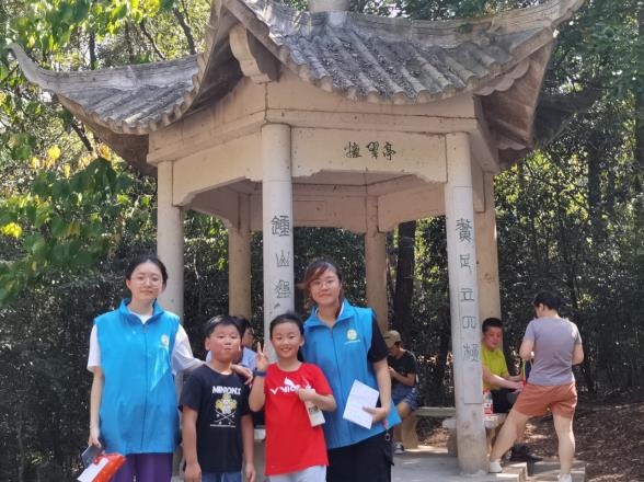按照鐘山風(fēng)景名勝區(qū)紫金山東入口停車場→①中點(diǎn)→②范鴻仙墓→③中點(diǎn)→④擁翠亭→⑤中點(diǎn)→⑥頭陀嶺景區(qū),這個路線,各個家庭有序打卡,為自己的打卡表依次爭取了一面面小國旗,并且拿到了一定數(shù)量的礦泉水作為登山補(bǔ)給。有些家庭由于不熟悉地形,在一開始的登山過程中找不到打卡點(diǎn),造成了短暫落后,但好在能夠重整士氣,后來居上。