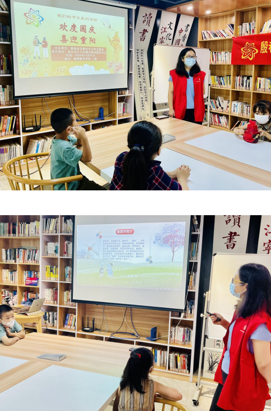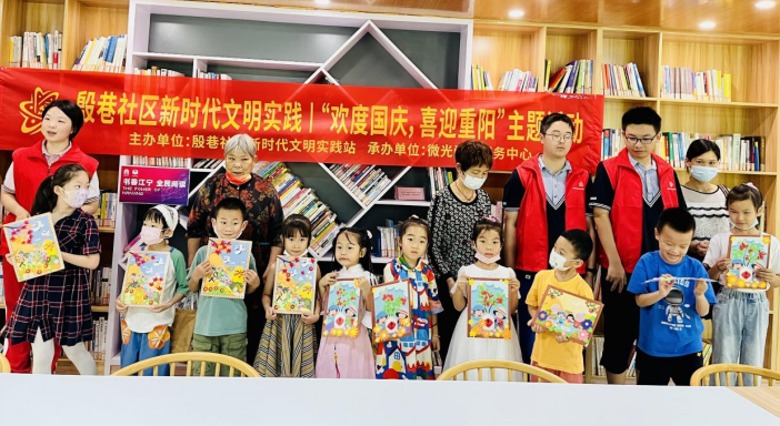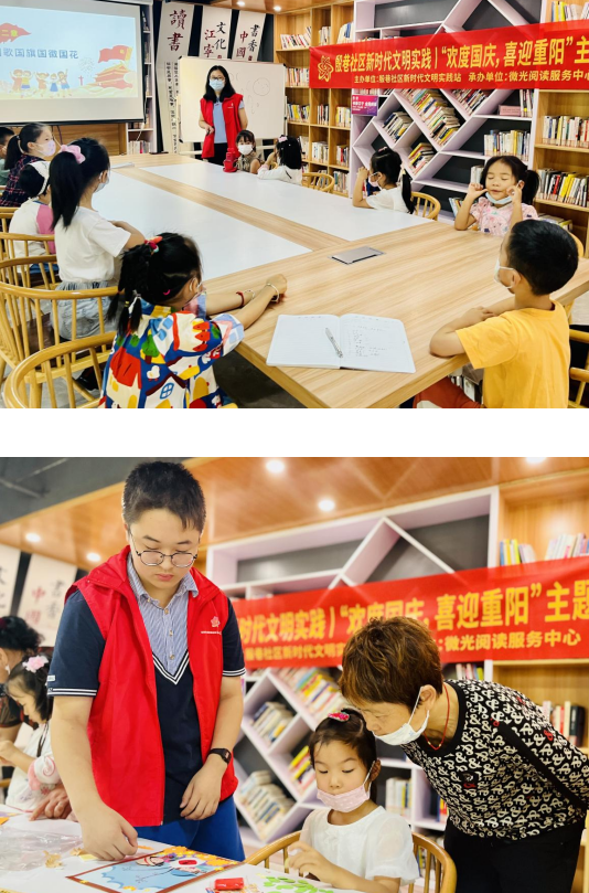 2022年10月長假,當(dāng)國慶遇上重陽節(jié),南京市江寧區(qū)秣陵街道殷巷社區(qū)新時(shí)代文明實(shí)踐站聯(lián)合微光閱讀服務(wù)中心,在康博睦鄰書房舉辦“歡度國慶,喜迎重陽”活動(dòng),讓孩子和爺爺奶奶們在學(xué)習(xí)、了解有關(guān)兩個(gè)節(jié)日的知識(shí)之余,既增加對節(jié)日的歡樂感受,又培養(yǎng)孩子們的愛國之心,傳承中華傳統(tǒng)美德!