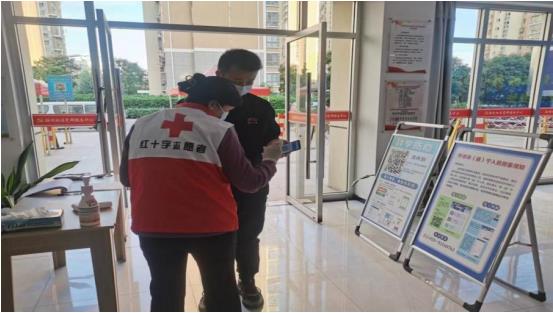 時(shí)刻在行動(dòng) 駱村社區(qū)紅十字志愿者參加防疫工作