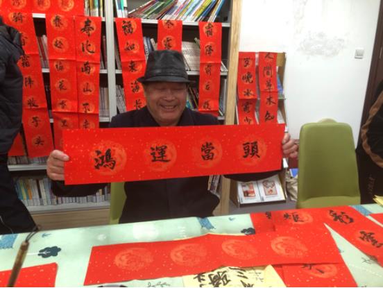 活動現(xiàn)場氛圍熱烈,圍觀的居民也想過過手癮,字不好看不要緊,重在參與。“健康快樂最重要,多寫幾張送給大家!”李大爺興致勃勃地給在場所有人送上了祝福。