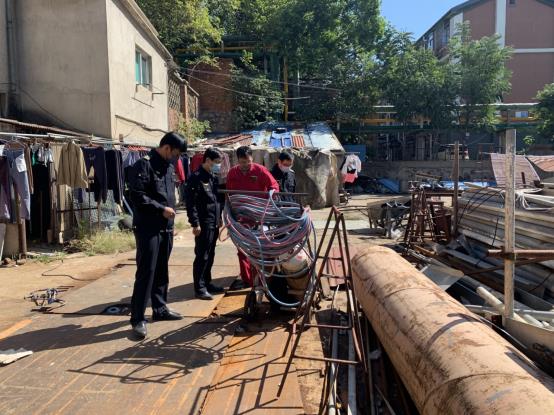 檢查過程中,工作人員來到江蘇天目建設(shè)集團(tuán)有限公司,對(duì)企業(yè)內(nèi)各類設(shè)備進(jìn)行了全面檢查,重點(diǎn)檢查了氣瓶存放、消防設(shè)施、燃?xì)夤艿?、油漆存?chǔ)等,及時(shí)排查和消除安全隱患。
