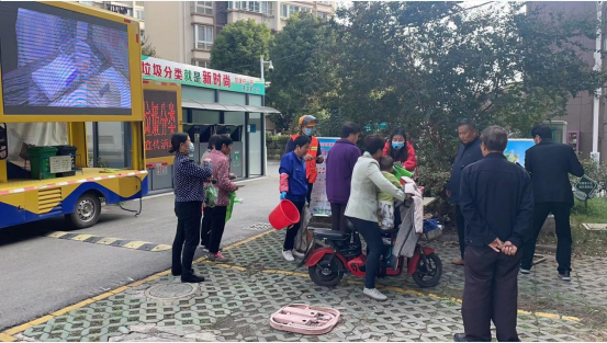 社區(qū)工作人員將宣傳地點選在垃圾分類站點旁,通過流動電子大屏播放垃圾分類宣傳視頻,方便小區(qū)居民了解垃圾分類常識。同時,社區(qū)工作人員主動向過往居民發(fā)放垃圾分類宣傳折頁,與居民就垃圾分類的意義,垃圾怎樣分類,投放注意等事項和居民進行了溝通交流。宣傳活動增強了居民對垃圾分類知識的了解,促使社區(qū)居民能夠積極參與到實踐垃圾分類的行動中,從而不斷提高社區(qū)居民自覺愛護環(huán)境衛(wèi)生的意識。小區(qū)居民表示,“做好垃圾分類關系到我們生活的環(huán)境,我不僅自己要做好垃圾分類,還要帶動身邊的家人朋友一起!”