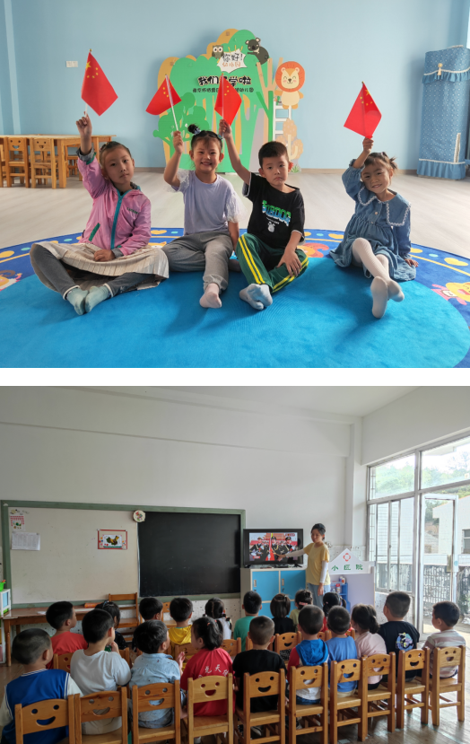 首先,老師通過圖片、視頻的方式向少兒介紹了國旗、國徽、國慶節(jié)的含義及由來。旨在讓轄區(qū)少年兒童接受紅色教育,學(xué)習(xí)紅色文化,傳承紅色精神。