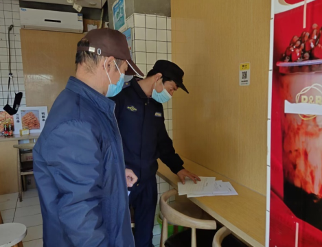 持續(xù)開展沿街商戶防疫情況常態(tài)化監(jiān)督檢查,重點對轄區(qū)內(nèi)所有沿街商鋪和農(nóng)貿(mào)市場,尤其是商場、超市、銀行、理發(fā)店、農(nóng)貿(mào)市場等重點場所嚴(yán)格落實佩戴口罩、測量體溫、掃“場所碼”、查驗健康碼和行程碼、消毒消殺等防疫措施,對檢查中發(fā)現(xiàn)的問題及不足,及時告知防疫事項與整改要求,提高商戶防疫意識。同時,督促沿街商戶嚴(yán)格遵守疫情防控相關(guān)規(guī)定,做好核酸檢測。
