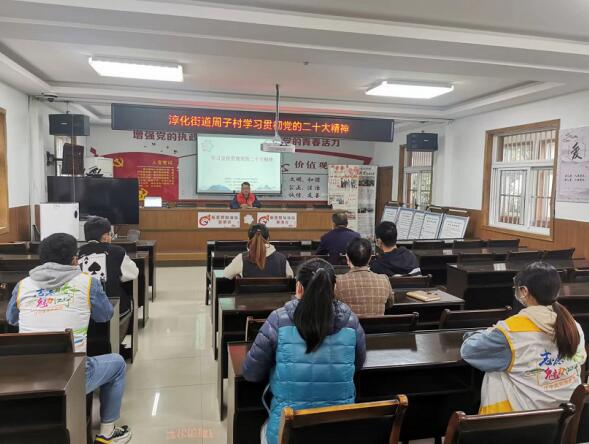10月26日,南京市江寧區(qū)淳化街道周子村黨總支及團支部在新時代文明實踐站開展學習宣傳貫徹二十大精神會議,把學習宣傳貫徹二十大精神作為首要政治任務,營造濃厚的學習宣傳貫徹氛圍,切實把黨員干群的思想和行動統(tǒng)一到二十大精神上來。