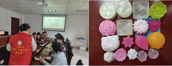 現(xiàn)場,志愿者詳細地為大家講解了香皂的制作方法、制作原料與制作工具等相關(guān)內(nèi)容,并將制作材料按照溶解、調(diào)色、攪拌、注模、風干、脫模等步驟一一向大家演示,現(xiàn)場示范香皂的制作過程。隨后,在志愿者的幫助和指導(dǎo)下,居民們根據(jù)自己的喜好,分別選擇了各種不同形狀的模具和不同功效、味道的精油進行了手工創(chuàng)作。制作過程中,大家相互交流,互相幫助,現(xiàn)場歡聲笑語不斷,不一會兒,一塊塊造型可愛、清新怡人的香皂相繼出模。大家欣喜地相互分享展示,并表示這樣的活動十分有趣,希望接下來社區(qū)能夠多多舉辦此類活動。