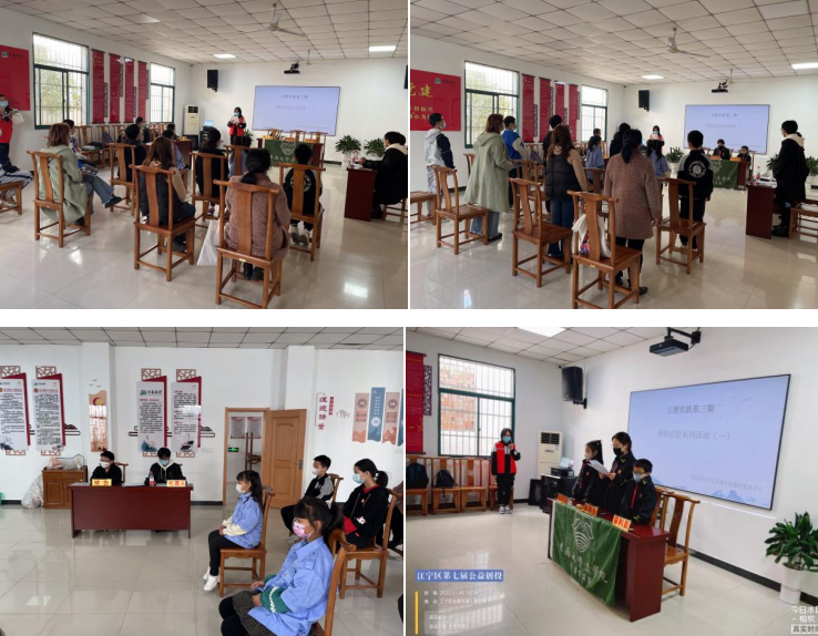 本次活動邀請了東南大學(xué)法學(xué)院老師進行指導(dǎo),對于“模擬法庭”上審判長、陪審員、原告、被告等角色,老師一一向小朋友們詳細講解,確保正式“開庭”時各環(huán)節(jié)順利進行。志愿者扮演審判長、代理人、書記員,同學(xué)們則擔(dān)任陪審員、審判員、公訴人、被告人和法警等角色,本次“模擬法庭”審理的是一起校園欺凌案件。小演員們演得有板有眼,把法律工作者的認真、嚴謹以及公平、公正的敬業(yè)精神展示了出來,法庭嚴肅、莊重的氛圍也營造出了來,讓所有在場的旁聽人員真正融入到了整個“審判”過程中。