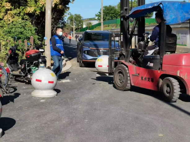 經(jīng)過實地走訪,新合村城治委公眾委員發(fā)現(xiàn)新合村黨群服務(wù)中心附近化肥廠南門廣場長期有大貨車占用停車位。公眾委員耐心勸說大車司機將貨車停放到合適的車位,并指導施工人員擺放隔離石球,規(guī)范停車位間距,同時增劃公共停車位,從而解決市民的臨時停車訴求。截至目前,此處共擺放隔離石球40個,新劃南門廣場小車停車位32個。