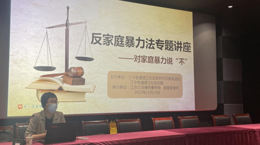 11月25日是“國(guó)際反家暴日”,為讓轄區(qū)婦女居民進(jìn)一步了解家庭暴力的危害,普及《反家庭暴力法》,護(hù)航家庭幸福,11月23日,南京市江寧區(qū)江寧街道盛江社區(qū)新時(shí)代文明實(shí)踐站聯(lián)合社區(qū)婦聯(lián)開展反家暴法講座。