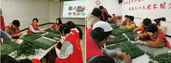 上午九點(diǎn),手工草坪競(jìng)賽活動(dòng)正式開(kāi)始?;顒?dòng)現(xiàn)場(chǎng),項(xiàng)目執(zhí)行人員將殘疾人每四人分成一組,并為每一組分發(fā)了制作草坪的材料,并教學(xué)復(fù)習(xí)了手工草坪的正確制作方法,為了服務(wù)對(duì)象在接下來(lái)的比賽能夠更加順利地完成比賽。