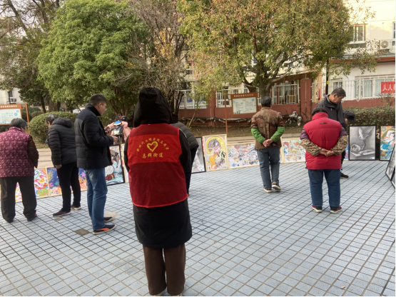 為不斷豐富社區(qū)居民文化生活內(nèi)涵,弘揚(yáng)熱愛(ài)生活發(fā)現(xiàn)美好的社區(qū)文化,2022年12月6日起,南京市棲霞區(qū)馬群街道新時(shí)代文明實(shí)踐所與果場(chǎng)社區(qū)新時(shí)代文明實(shí)踐站進(jìn)行站所聯(lián)動(dòng),依托社區(qū)新時(shí)代文明實(shí)踐站文化服務(wù)平臺(tái),組織“齊益果”積分制志愿者、黨員、居民在轄區(qū)天悅花園、馬群公寓小區(qū)、陳家院城中村內(nèi)開(kāi)展“社區(qū)繪畫(huà)展覽”志愿活動(dòng)。