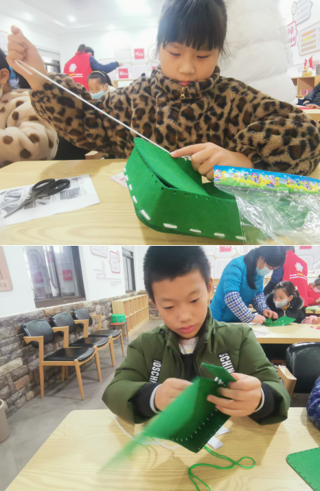 隨后,志愿者老師向小朋友們分發(fā)制作“紅軍包”的手工材料并演示制作步驟及注意事項。小朋友們認真聆聽,隨后迫不及待地投入到手工制作中。大家一針一線用心縫制,針線記錄的不僅是童年,更是濃濃的愛黨愛國情懷。在小朋友與家長的配合下,一個個漂亮精美的紅軍包就呈現在眼前。孩子們都迫不及待地背起自己的“紅軍包”讓家長拍照留念,稚嫩的臉龐洋溢著開心燦爛的笑容,表達著童心向黨、童心愛國之情。