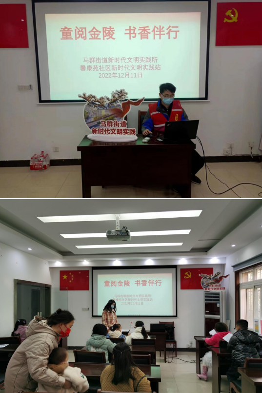 2022年12月11日上午,南京市棲霞區(qū)馬群街道馨康苑社區(qū)新時代文明實踐站聯(lián)合馬群街道新時代文明實踐所在馨康苑社區(qū)開展了“童閱金陵 書香伴行”閱讀宣講活動。此次閱讀宣講活動旨在動員廣大社區(qū)居民養(yǎng)成全民閱讀的良好習(xí)慣,同時為社區(qū)建設(shè)精神文明活動建言獻策,形成人人參與、共建共治共享的精神文明社區(qū)氛圍。