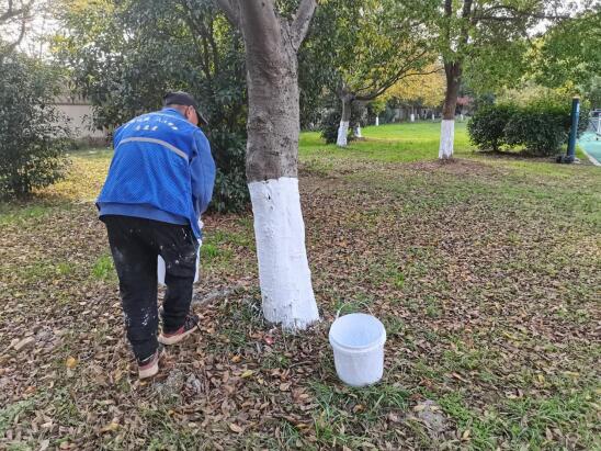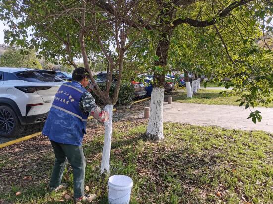 樹木涂白穿新衣 防蟲美化迎寒冬