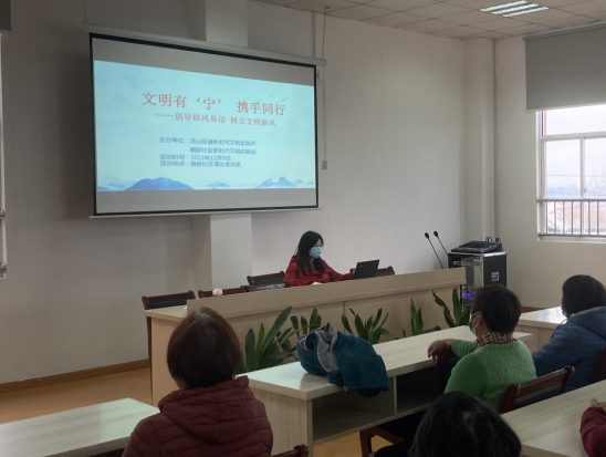 為進(jìn)一步推動(dòng)移風(fēng)易俗,破除陳規(guī)陋習(xí),引導(dǎo)轄區(qū)居民樹(shù)立科學(xué)的理想信念,建立勤儉節(jié)約、文明健康的生活方式。12月9日,南京市江寧區(qū)湯山街道鶴齡社區(qū)新時(shí)代文明實(shí)踐站開(kāi)展“文明有‘寧’ 攜手同行——倡導(dǎo)移風(fēng)易俗 樹(shù)立文明新風(fēng)”主題宣講活動(dòng)。