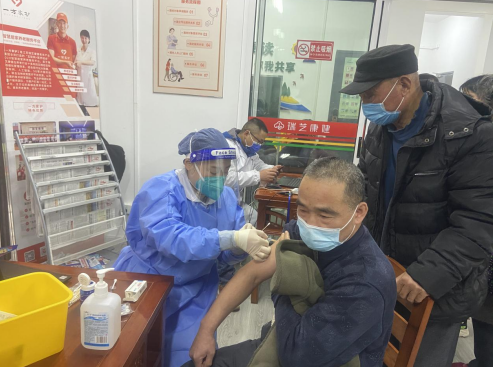 12月16日下午,南京市棲霞區(qū)棲霞街道石埠橋社區(qū)開展“送“‘苗’上門,老人接種更安心”便民服務(wù)活動,由棲霞衛(wèi)生院的醫(yī)護(hù)人員到社區(qū)為老年進(jìn)行疫苗接種。
