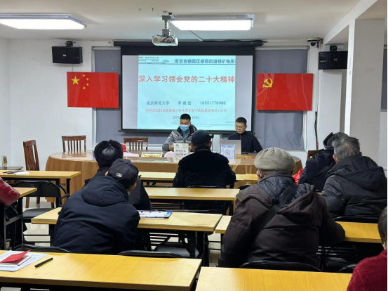 為深入學(xué)習(xí)貫徹黨的二十大精神,及時將黨的二十大精神傳達到社區(qū)干部群眾,12月16日,南京市棲霞區(qū)棲霞街道全民閱讀辦聯(lián)合銀礦地質(zhì)社區(qū)黨總支邀請南京師范大學(xué)馬克思主義學(xué)院黨務(wù)書記李前進為干部群眾宣講二十大精神。