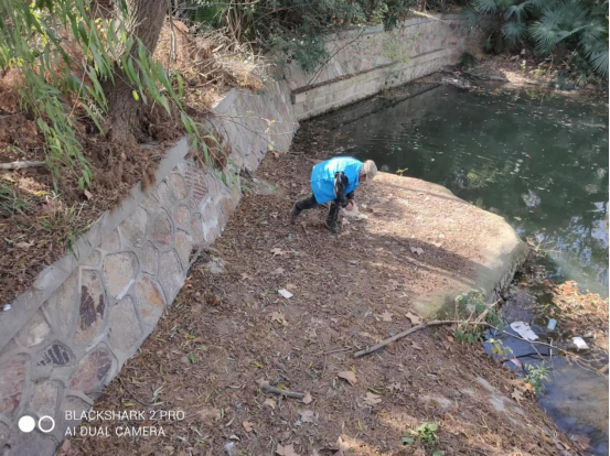 清晨,藍(lán)馬甲在日常巡查河道時(shí)發(fā)現(xiàn)河邊水草上面漂浮著很多落葉垃圾,嚴(yán)重影響周邊環(huán)境。發(fā)現(xiàn)該情況后,藍(lán)馬甲們立即拿著笤帚、袋子、火鉗、網(wǎng)兜來到河道邊,打撈河道里的漂浮物,撿拾河岸邊的垃圾和落葉,忙的熱火朝天。在他們的辛勤付出下,原本漂浮在水面上的水葫蘆、浮萍、水草及河面河岸垃圾,都已打撈清除完畢,部分生活垃圾也進(jìn)行了無害化處理。經(jīng)過他們的清理,河面清澈見底,河道兩側(cè)垃圾不見蹤影,環(huán)境更加整潔干凈。
